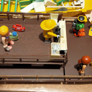 Sur la troisième photo on peux voir la cabine de pilotage en plus de celle sur le pont supérieur. J'ai ajouté des feuille de plastique pour faire le verre des hublots.